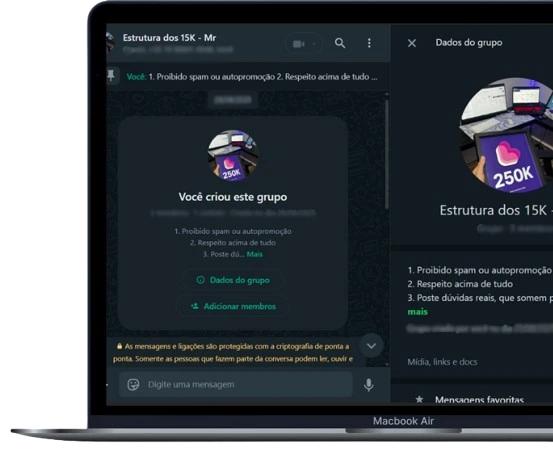 Conte com acesso exclusivo ao grupo VIP no WhatsApp para tirar dúvidas.